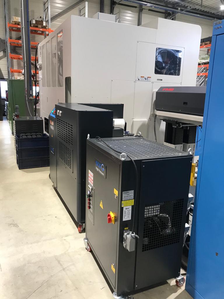 Modelo SCS-1900 instalada junto a NAKAMURA NTY3-150 y nuestro enfriador chiller.