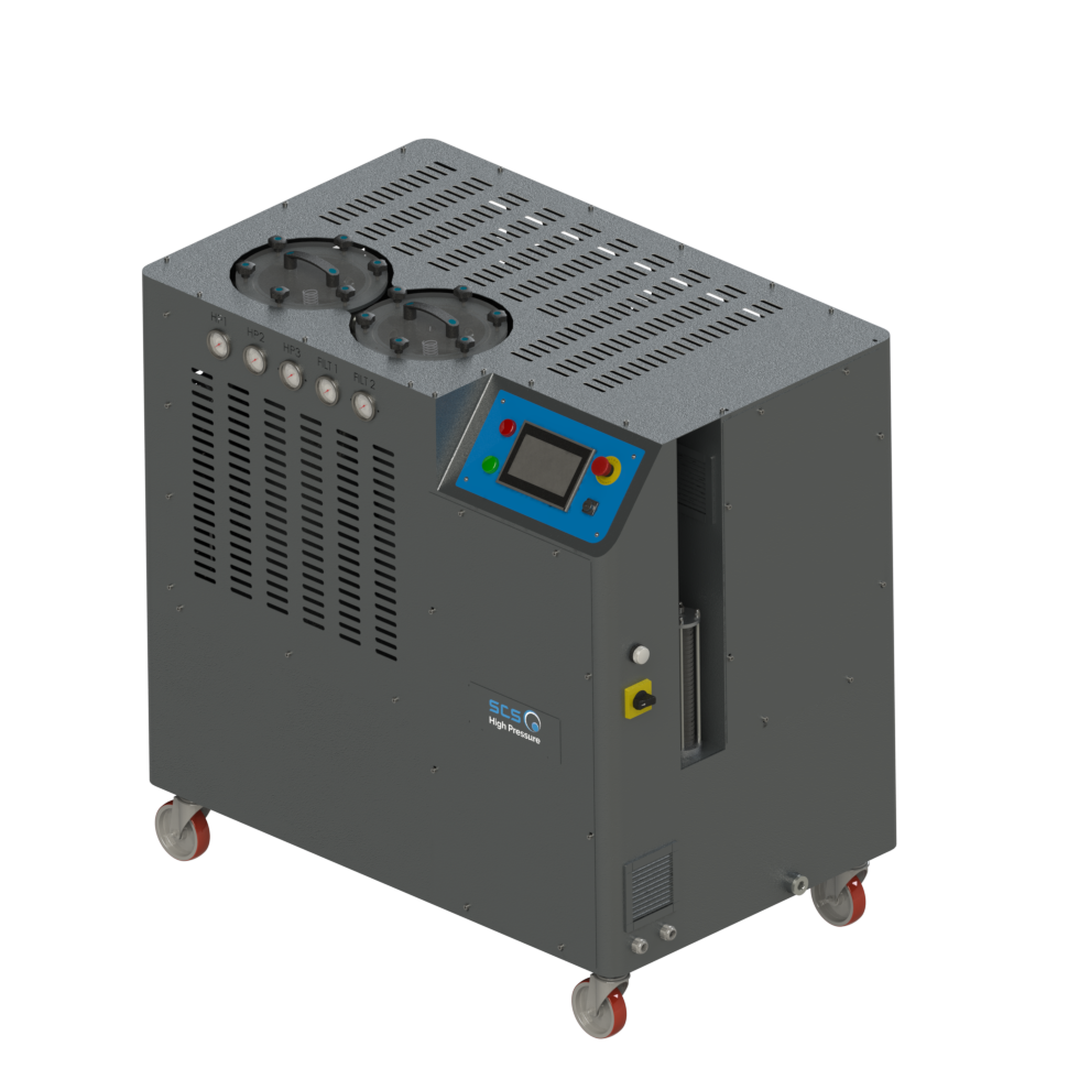 Sistema de alta presión con 1 o 2 filtrados de bolsa y con 1, 2 o 3 bombas. Ideal para tornos de cabezal fijo con 2 o 3 torretas y centros de mecanizado verticales y horizontales.